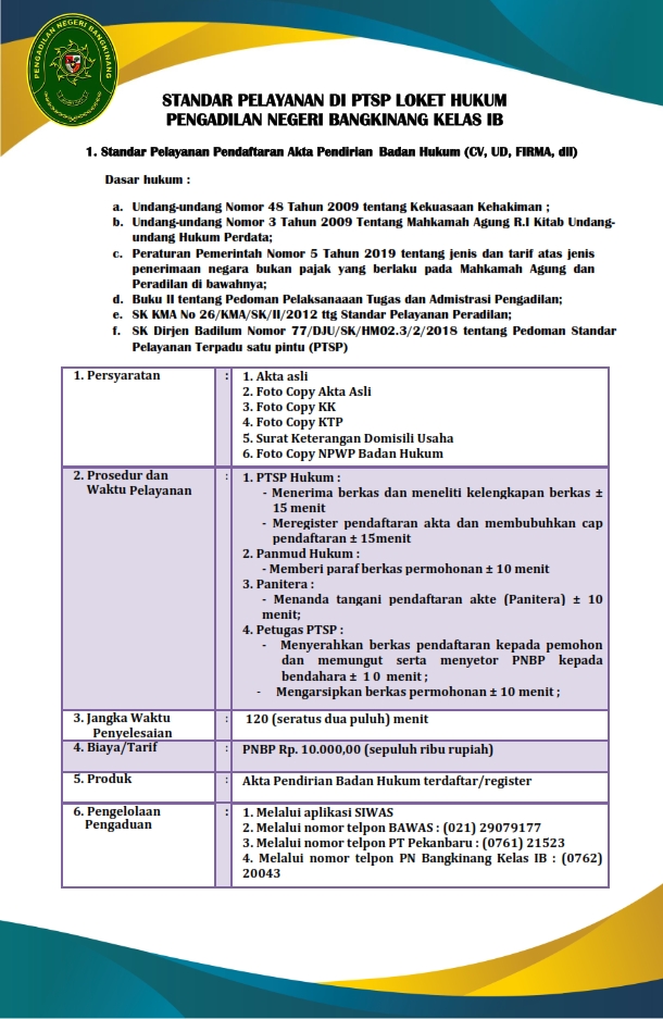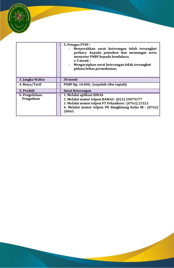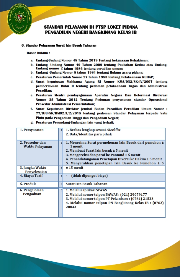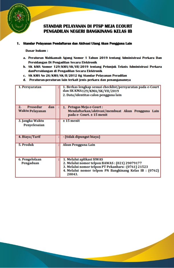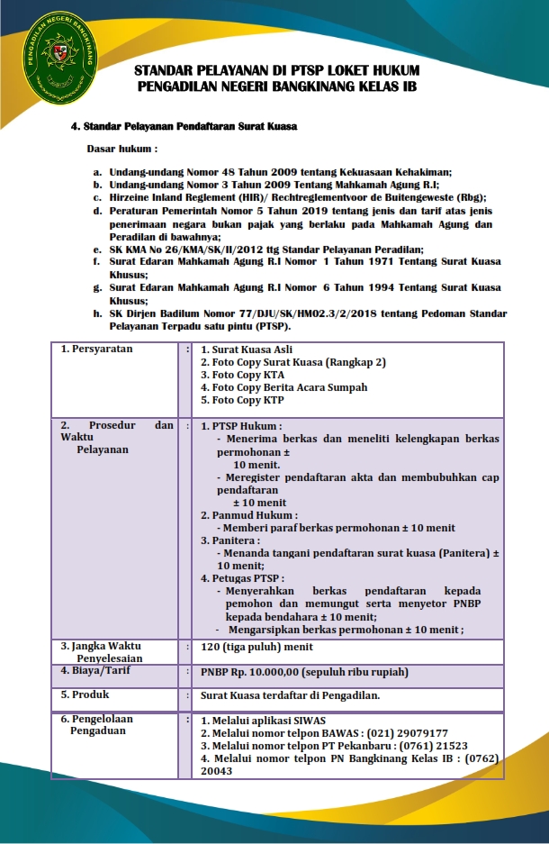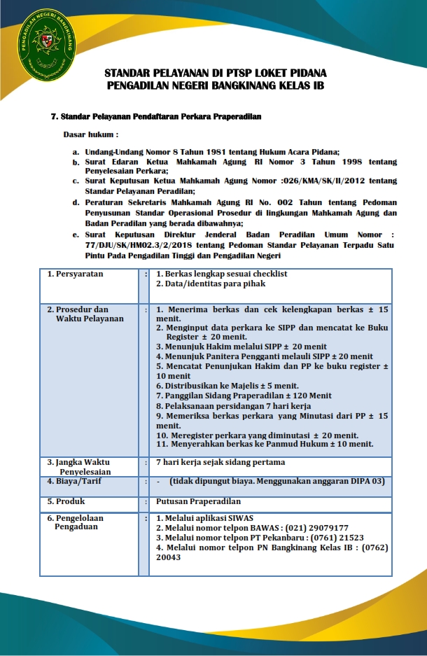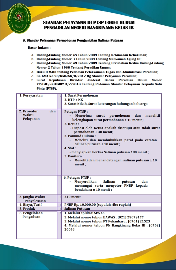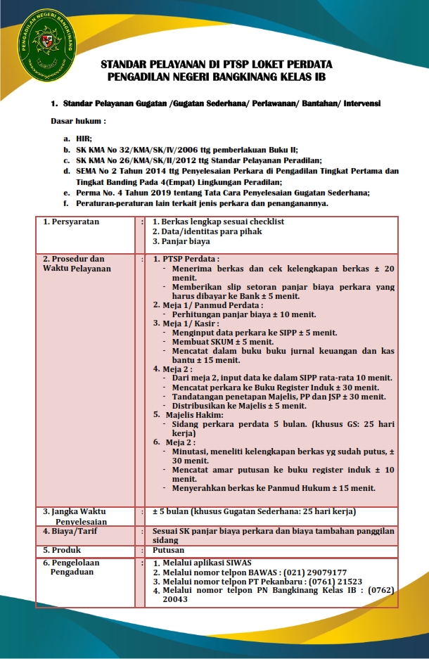 STANDAR PELAYANAN PENGADILAN NEGERI BANGKINANG DALAM FORMAT PDF